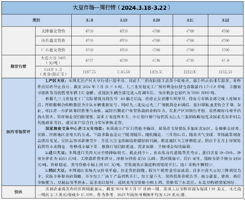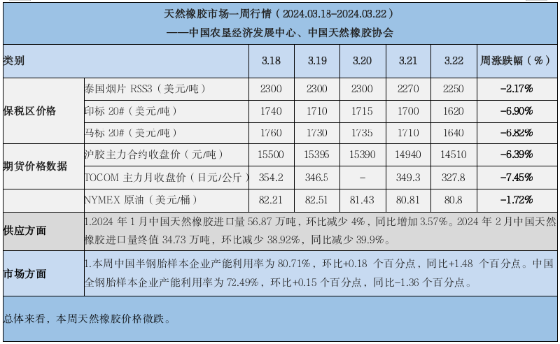 天然橡膠、大豆、玉米市場一周行情(2024.03.18-03.22)