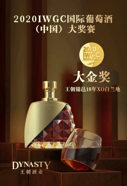2020國際葡萄酒(中國)大獎賽(IWGC)在山東沃族(蓬萊)葡萄酒莊園滿落幕,本次大賽在金獎的基礎(chǔ)上產(chǎn)生大金獎,比賽中,王朝錦邑18年XO白蘭地表現(xiàn)突出,在眾多中外葡萄酒中脫穎而出,斬獲2020國際葡萄酒(中國)大獎賽(IWGC)大金獎。