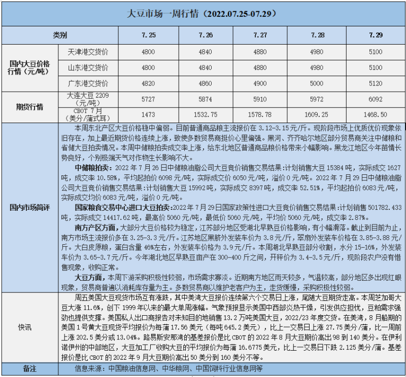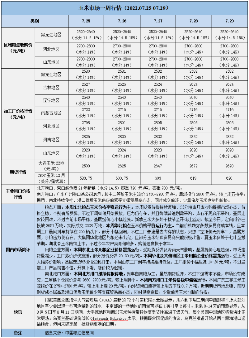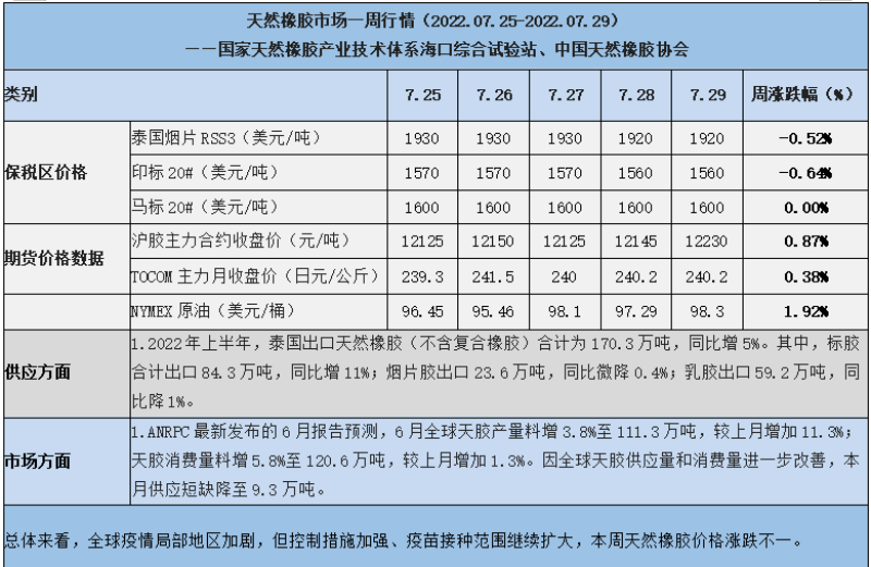 天然橡膠、大豆、玉米市場(chǎng)一周行情(2022.07.25-07.29)
