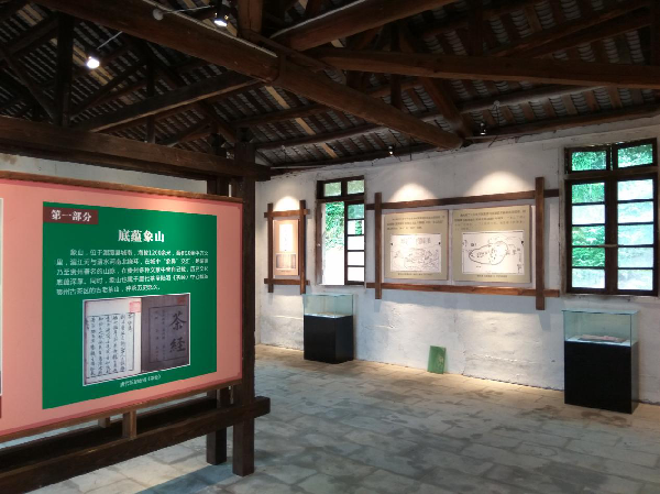 茶史陳列館。位于貴州省湄潭茶場打鼓坡分場場部舊址內(nèi),始建于2017年,原名“象山茶史陳列館”,是由貴州茶文化生態(tài)博物館負(fù)責(zé)籌建的一個(gè)以展示象山茶葉發(fā)展歷史的專題陳列館。館舍占地面積約1000平方米,展陳內(nèi)容包括圖文展廳、室內(nèi)實(shí)物場景復(fù)原和室外展板三部分:圖文展廳包括“前言”“底蘊(yùn)象山”“家國象山”“激情象山”“美麗象山”五部分11單元圖片、文字和文獻(xiàn)影印件;室內(nèi)實(shí)物場景復(fù)原包括分場收青室、辦公室、活動(dòng)室和職工宿舍等四部分。室外展板包括“中華茶文化名山”“貴州茶葉第一縣”兩部分。展陳實(shí)物40余件,復(fù)制品20余件,圖片240余張。