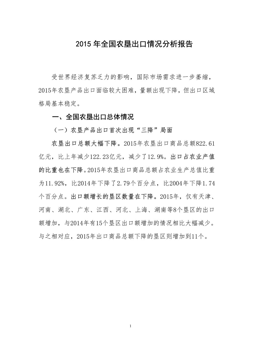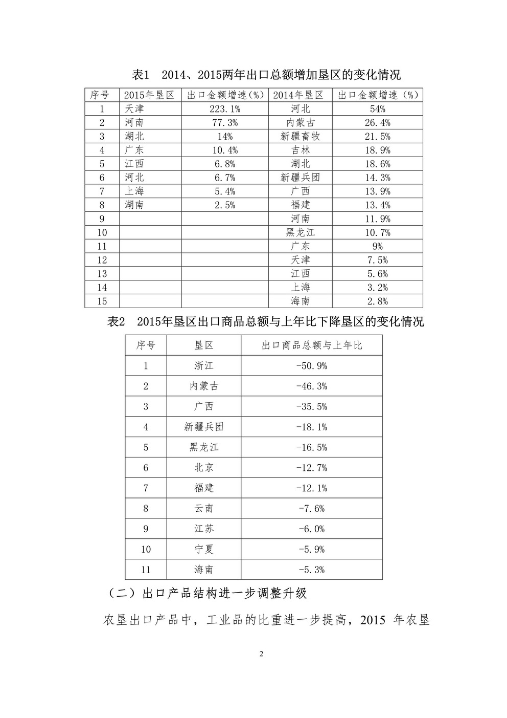 2015年全國農(nóng)墾產(chǎn)品出口情況分析報告