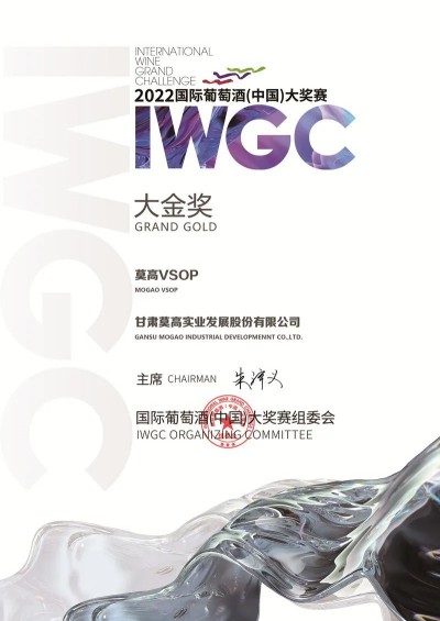 近日,2022國際葡萄酒(中國)大獎賽(IWGC)榜單發(fā)布,莫高VSOP喜獲大金獎,向世界展示了“一瓶好葡萄酒的中國標準”。