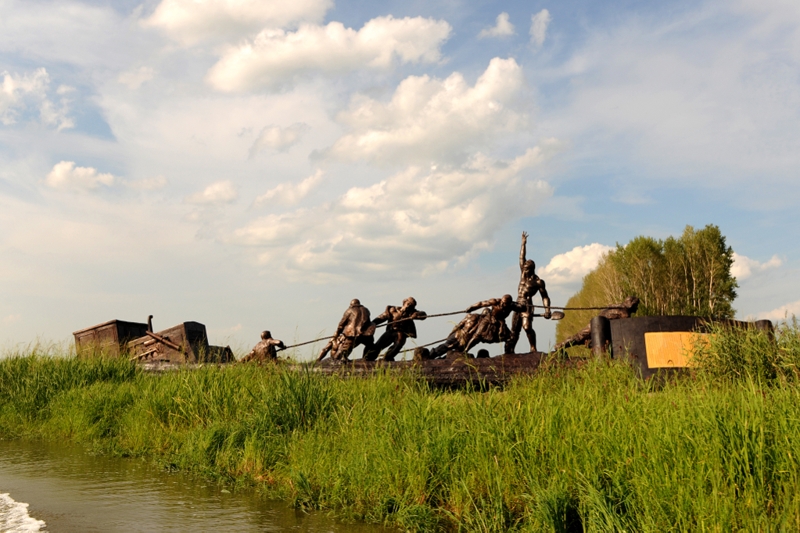 雁窩島上,殘?jiān)珨啾谡洳刂呿H、女真、隋唐的遺跡,而刻有“潛水掛鉤”“張德信運(yùn)齒輪”“羅海榮水上運(yùn)油”字樣的碩大雕塑,蘊(yùn)含著北大荒精神發(fā)源地曾經(jīng)上演的一幕幕震撼心靈的場(chǎng)景,展示著北大荒人誓把荒原變糧田的豪邁氣概。