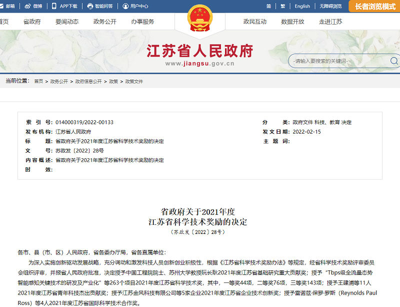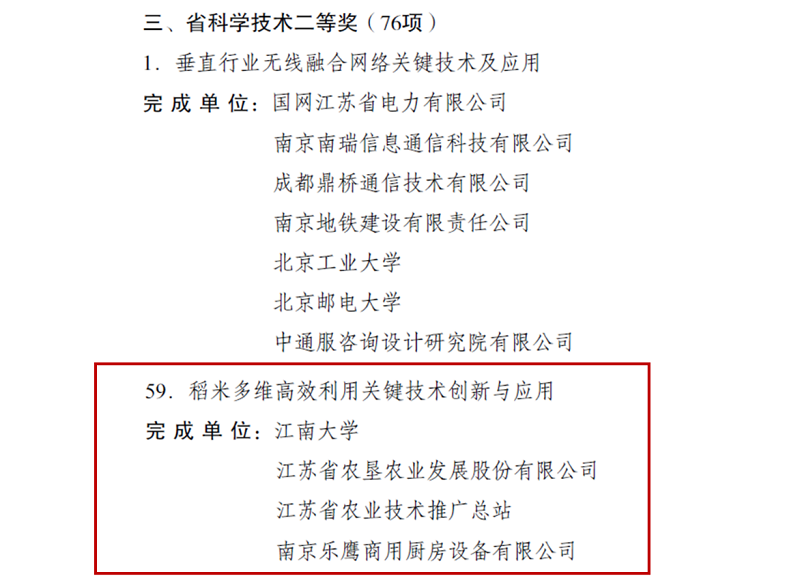 近日,江蘇省人民政府發(fā)布《省政府關(guān)于2021年度江蘇省科學(xué)技術(shù)獎勵的決定》(蘇政發(fā)〔2022〕28號),江蘇省農(nóng)墾農(nóng)業(yè)發(fā)展股份有限公司與江南大學(xué)等單位合作研發(fā)的“稻米多維高效利用關(guān)鍵技術(shù)創(chuàng)新與應(yīng)用”成果榮獲二等獎,這是蘇墾農(nóng)發(fā)公司組建以來首次獲得該獎勵,彰顯公司在農(nóng)產(chǎn)品精深加工領(lǐng)域內(nèi)突出的研發(fā)能力和創(chuàng)新潛質(zhì)。