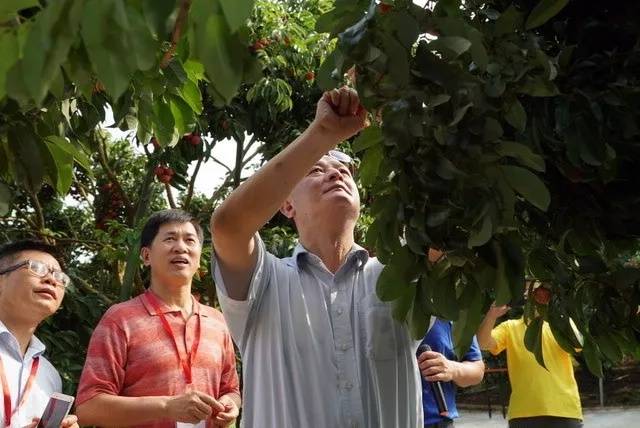 “這是從化的優(yōu)質(zhì)品種——井岡紅糯,顏色鮮艷耐儲(chǔ)存?!?廣州市從化華隆果蔬保鮮有限公司董事長(zhǎng)歐陽(yáng)建忠向農(nóng)業(yè)農(nóng)村部南亞熱帶作物中心副主任韓沛新、廣東省農(nóng)業(yè)廳副廳長(zhǎng)黃斌民、廣州市農(nóng)業(yè)局副局長(zhǎng)李仲鎧等人介紹。大家紛紛從樹(shù)上摘下荔枝品嘗,韓沛新說(shuō):“優(yōu)良品種可以使效益增加十倍,對(duì)農(nóng)民來(lái)說(shuō)意義重大”。