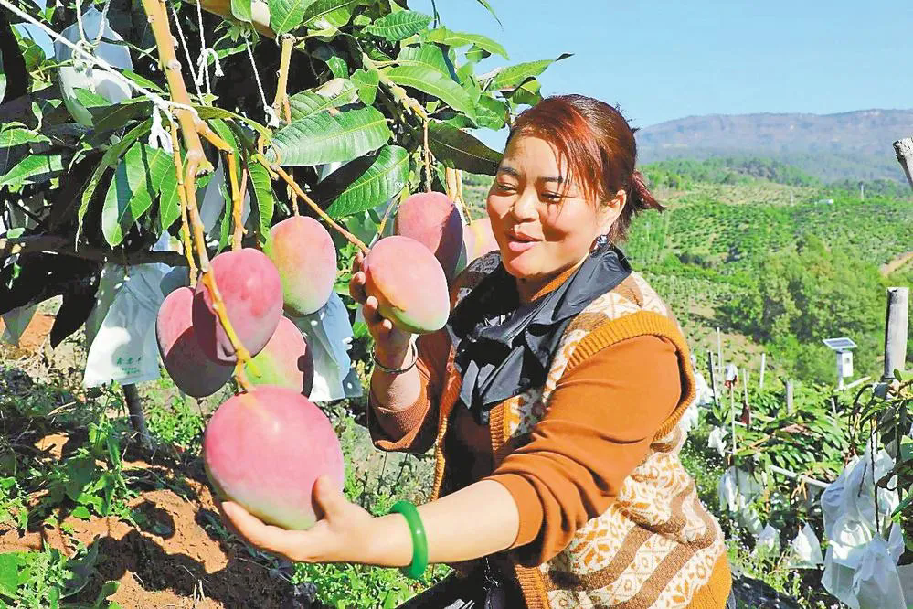 初冬時(shí)節(jié),麗江市華坪縣中心鎮(zhèn)田坪村14組卻暖意融融。余云花家的芒果園里,村民正忙著采摘最后一批晚熟凱特芒。沉甸甸的果實(shí)壓彎枝頭,成為冬日里一道亮麗的風(fēng)景。