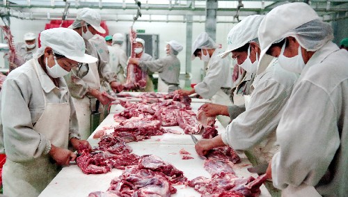 近日,寧夏農(nóng)墾賀蘭山清真肉羊產(chǎn)業(yè)集團(tuán)與部分中東國家的企業(yè)簽訂了共2200噸羊肉銷售協(xié)議,標(biāo)志著寧夏牛羊肉食品大批量進(jìn)入國際市場。目前,寧夏全區(qū)肉牛飼養(yǎng)量突破百萬頭,肉羊養(yǎng)殖量接近千萬只。(新華社記者 李紫恒 攝)
