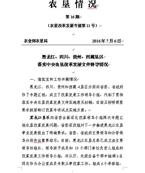 農(nóng)墾情況第16期(農(nóng)墾改革發(fā)展專(zhuān)遞第11號(hào))