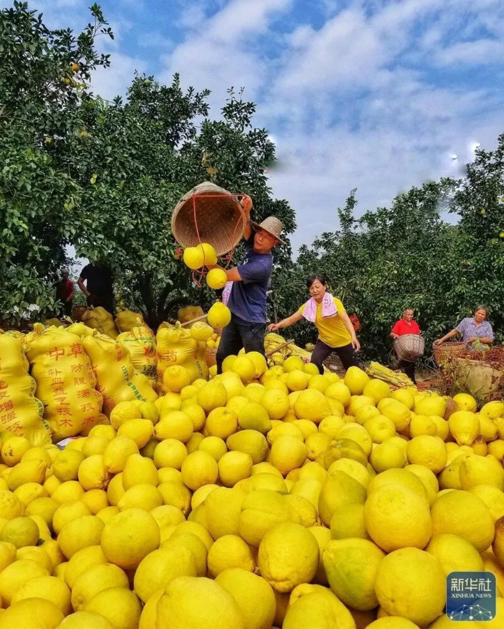 ↑容縣沙田柚豐收(龍海強(qiáng) 攝)