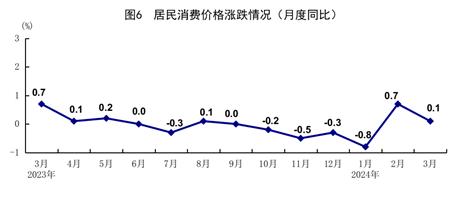 一季度,全國(guó)居民消費(fèi)價(jià)格(CPI)同比持平。分類別看,食品煙酒價(jià)格下降1.7%,衣著價(jià)格上漲1.6%,居住價(jià)格上漲0.2%,生活用品及服務(wù)價(jià)格上漲0.8%,交通通信價(jià)格下降1.4%,教育文化娛樂價(jià)格上漲2.3%,醫(yī)療保健價(jià)格上漲1.4%,其他用品及服務(wù)價(jià)格上漲2.9%。在食品煙酒價(jià)格中,鮮果價(jià)格下降7.3%,豬肉價(jià)格下降7.0%,鮮菜價(jià)格下降3.9%,糧食價(jià)格上漲0.4%??鄢称泛湍茉磧r(jià)格后的核心CPI同比上漲0.7%。3月份,全國(guó)居民消費(fèi)價(jià)格同比上漲0.1%,環(huán)比下降1.0%。