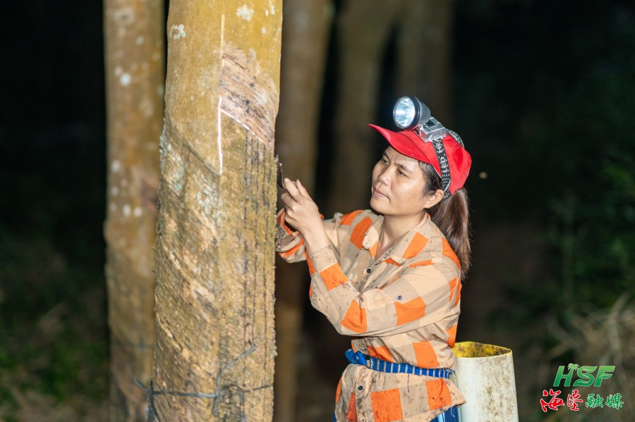 夜色漸漸深沉,膠林靜悄悄地積蓄著能量,就像她的心愿一樣,踏實(shí)而堅定。從照料好橡膠樹到管好一片膠園,再到帶領(lǐng)好一個團(tuán)隊,從勉強(qiáng)維持生計到年收入穩(wěn)步提高,李小萍的愿望從來都不復(fù)雜。她的期盼,早已和海墾的發(fā)展綁在一起,她要用自己的膠刀繪制出更加美好的明天,爭取多產(chǎn)膠、產(chǎn)好膠,為海南天然橡膠事業(yè)發(fā)展貢獻(xiàn)力量。