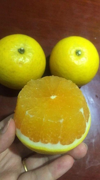 果盆上放的全是紅橙。但可能是紅江橙中構(gòu)不上檔次的次品,因?yàn)闆](méi)有貼標(biāo)簽。也可能是別處引種的紅江橙。但家鄉(xiāng)橙無(wú)疑了?,F(xiàn)在,我們遠(yuǎn)隔萬(wàn)里,而突遇了家鄉(xiāng)橙,仿如遇到了親人那般,頗感親切而驕傲。