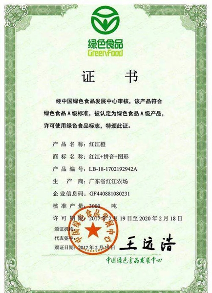 紅江橙,是紅江場(chǎng)科技人員,從一棵變異的單體中,通過(guò)嫁接促成嵌合體的變異而生成。自1973年投產(chǎn)以來(lái),現(xiàn)已擁有二萬(wàn)畝的生產(chǎn)基地。目前紅江農(nóng)場(chǎng)以創(chuàng)名牌為中心,規(guī)劃并建立完善的管理系統(tǒng),已擁有獨(dú)立的科技隊(duì)伍,與獨(dú)立的生產(chǎn)基地、試驗(yàn)基地、培育基地,以及加工與分級(jí)包裝生產(chǎn)線。已獲國(guó)家頒發(fā)的“綠色食品”標(biāo)準(zhǔn)證書(shū),中國(guó)綠色食品A級(jí)認(rèn)證,以及中國(guó)農(nóng)業(yè)博覽會(huì)名牌產(chǎn)品、廣東省名牌產(chǎn)品、廣東省著名商標(biāo)。已列入國(guó)家的星火計(jì)劃,是中國(guó)外交部國(guó)賓館指定的國(guó)賓產(chǎn)品。產(chǎn)品已經(jīng)出口了幾十個(gè)國(guó)家與地區(qū)。