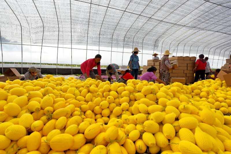 令人欣慰的是,興墾黃金蜜瓜品牌推廣和基地扶貧效果顯著。蜜蜂授粉的蜜瓜訂單價格比傳統(tǒng)激素授粉的瓜每公斤可高出1元,按畝產(chǎn)4000斤算,畝收益達萬元以上。種植公司蜜瓜訂單的村民蓋起了樓房,當?shù)厝肆w慕地稱為“金瓜樓”,興墾科技公司也被評為當?shù)氐凝堫^扶貧企業(yè)。豐收時節(jié),他倆的小家庭迎來新成員—金瓜蛋蛋。