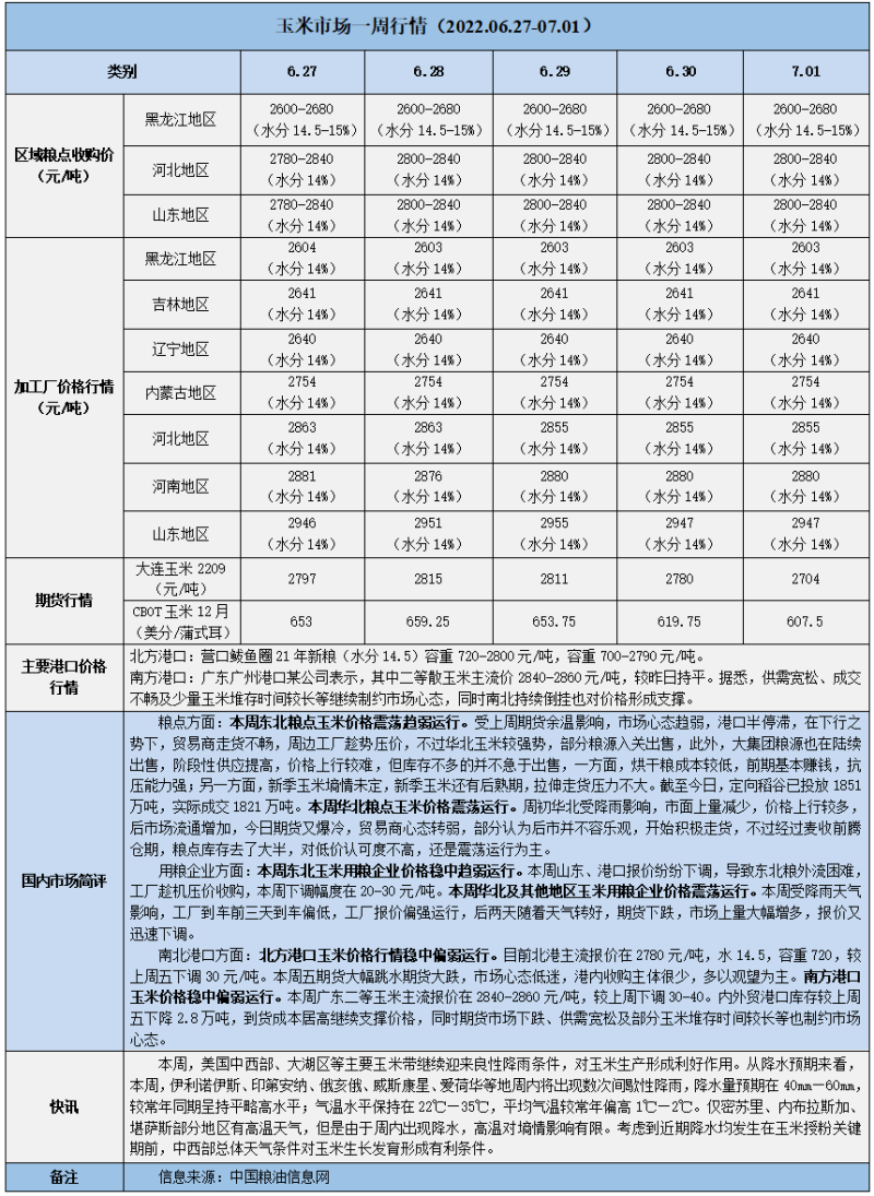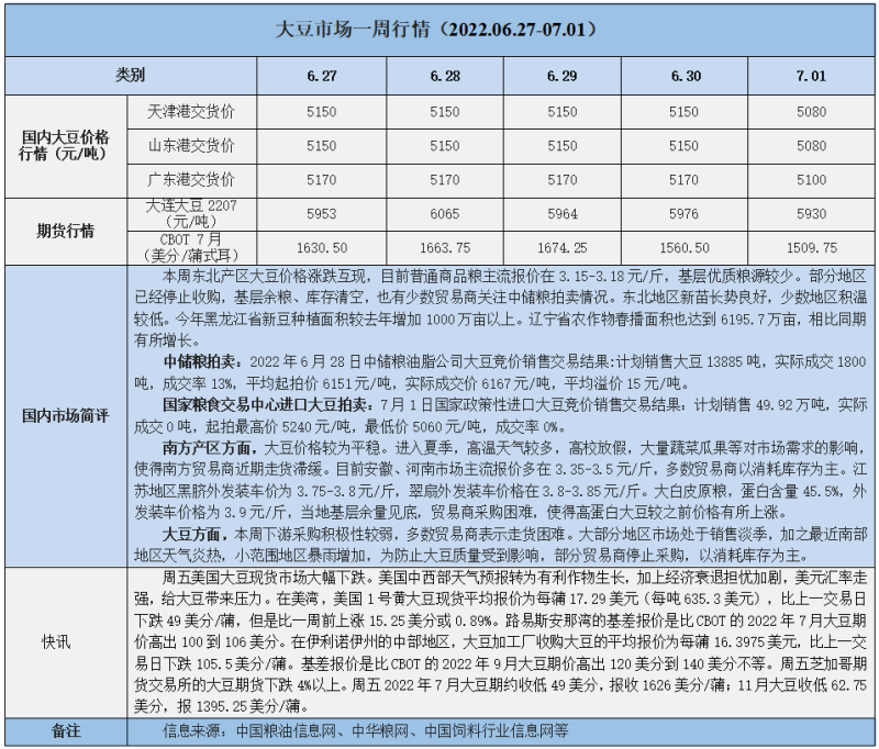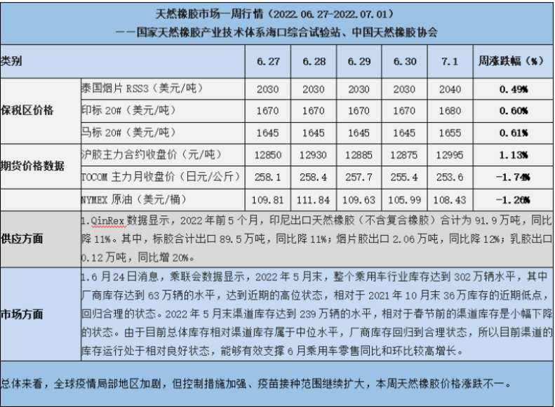 天然橡膠、大豆、玉米市場(chǎng)一周行情(2022.06.27-07.01)