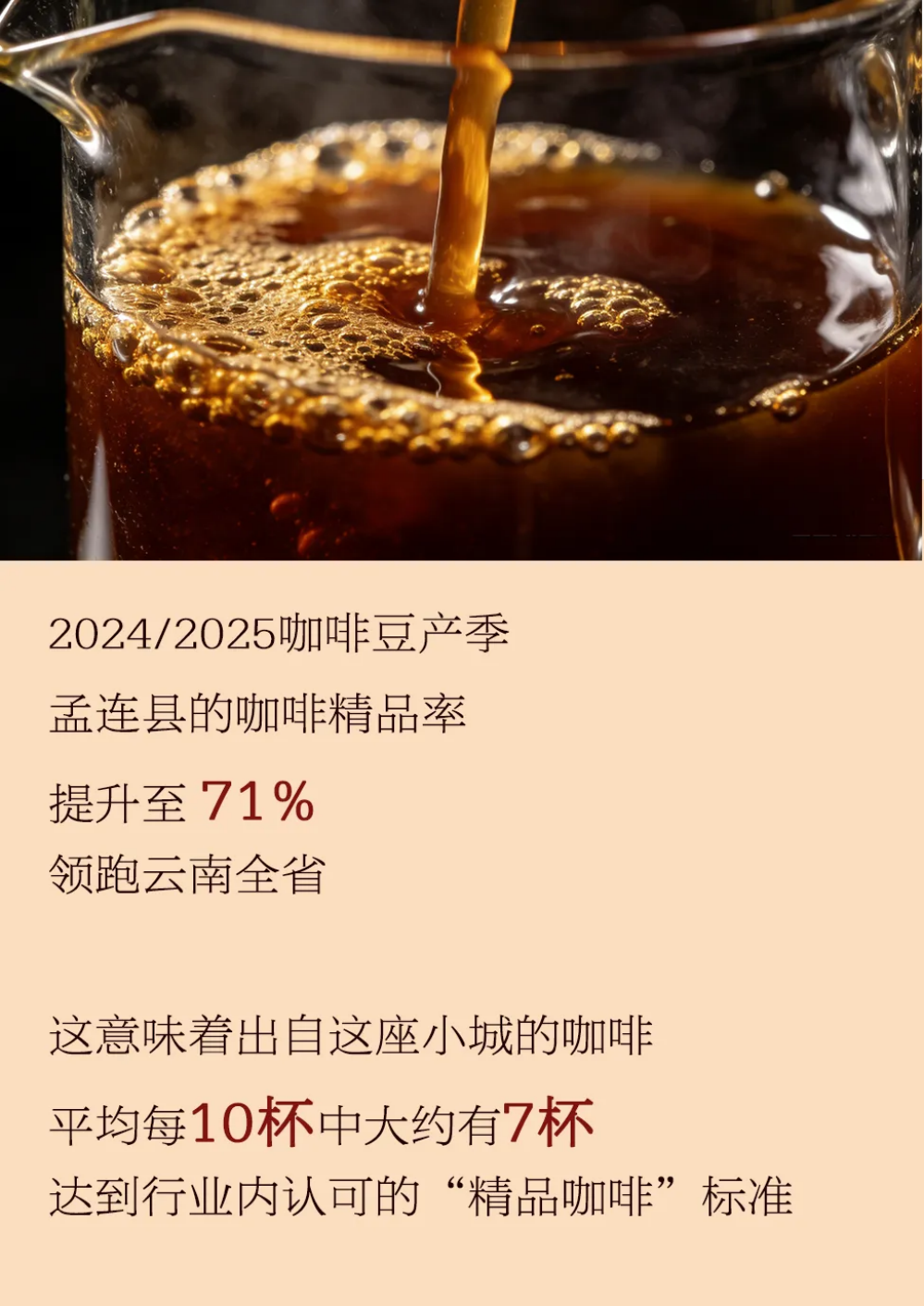 當(dāng)你選購一包孟連咖啡豆,或是在咖啡館看到它的名字,將有超過七成的概率邂逅一杯經(jīng)過專業(yè)認(rèn)證的好咖啡——它可能帶著瑰夏豆典型的花果香氣,或是卡蒂姆品種平衡的堅(jiān)果醇厚……風(fēng)土的饋贈(zèng),因標(biāo)準(zhǔn)的確立而變得清晰可觸。這種確定性,讓云南咖啡成為風(fēng)味版圖上值得信賴的坐標(biāo)。