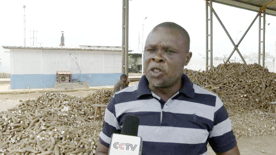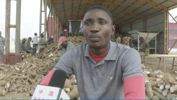 木薯粉加工廠廠長曹仁忠:我們使用中國先進的種植技術(shù)和理念,在7000多公頃的土地上種植了不同品種的木薯,這樣確保每個時間段都有木薯成熟,從而滿足當?shù)孛癖妼Z食的需求。