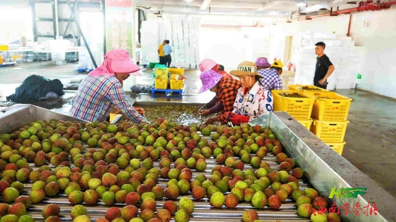 海墾紅明農(nóng)場(chǎng)公司擁有全國(guó)最大的荔枝鮮果交易中心,可為客商提供分揀、打包裝箱、冷鏈倉儲(chǔ)物流、冰袋等一體化服務(wù)。許雅 攝