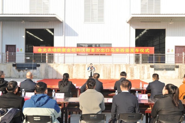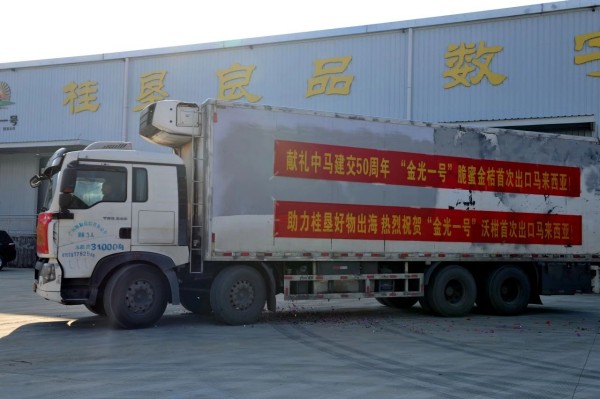 12月25日上午9時(shí),金光農(nóng)場(chǎng)公司“金光一號(hào)”脆蜜金桔、沃柑首次出口馬來(lái)西亞發(fā)車儀式在果蔬采后處理中心舉行。這是金光農(nóng)場(chǎng)公司加快“桂品出海”的又一有力舉措,再度開(kāi)辟了廣西農(nóng)墾集團(tuán)旗下名優(yōu)特農(nóng)產(chǎn)品走向東盟國(guó)家的新市場(chǎng)。