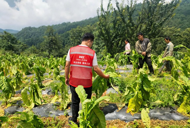 理賠人員查勘煙葉受損情況。人保財(cái)險(xiǎn)攀枝花市分公司