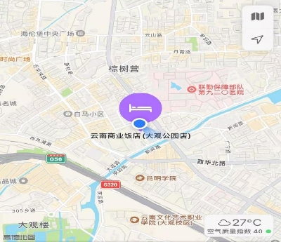 云南商業(yè)飯店(大觀國(guó)際),云南省昆明市西山區(qū)大觀路232號(hào),前臺(tái)電話0871-63336888