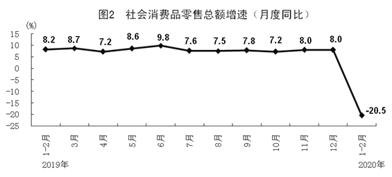 根據(jù)第四次全國經(jīng)濟(jì)普查結(jié)果對2019年社會消費(fèi)品零售總額進(jìn)行了修訂,2020年1-2月份增速按照可比口徑計(jì)算。
