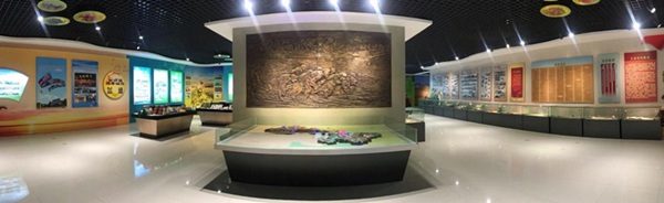 三是企業(yè)文化建設(shè)。主要擺放了新農(nóng)場(chǎng)建設(shè)、職工文化生活、助力脫貧攻堅(jiān)及農(nóng)墾精神等圖片及浮雕。展現(xiàn)了各企業(yè)充分利用政策機(jī)遇,大力推進(jìn)新農(nóng)場(chǎng)建設(shè)和環(huán)境整治活動(dòng),職工生活條件、生活環(huán)境大幅改善,昔日的荒灘現(xiàn)在變成了一座座現(xiàn)代化小城鎮(zhèn),墾區(qū)面貌和職工群眾的生活水平發(fā)生了翻天覆地的變化情況;結(jié)合企業(yè)特色、職工群眾需求,不斷建設(shè)完善小游園、文化廣場(chǎng)、文化活動(dòng)室等基礎(chǔ)設(shè)施,開(kāi)展形式多樣的文化活動(dòng),豐富職工群眾精神生活情況;自覺(jué)履行國(guó)企政治和社會(huì)責(zé)任,主動(dòng)與秦安、宕昌、古浪等深度貧困縣對(duì)接,選派扶貧干部駐村幫扶,切實(shí)加大農(nóng)副產(chǎn)品購(gòu)銷(xiāo)力度,全面助力脫貧攻堅(jiān)行動(dòng),彰顯國(guó)企擔(dān)當(dāng)情況;以及農(nóng)墾人在半個(gè)多世紀(jì)的開(kāi)發(fā)建設(shè)中,用青春、汗水甚至鮮血和生命,在極其艱苦的環(huán)境下培育和錘煉出的“艱苦奮斗、勇于開(kāi)拓”的農(nóng)墾精神。