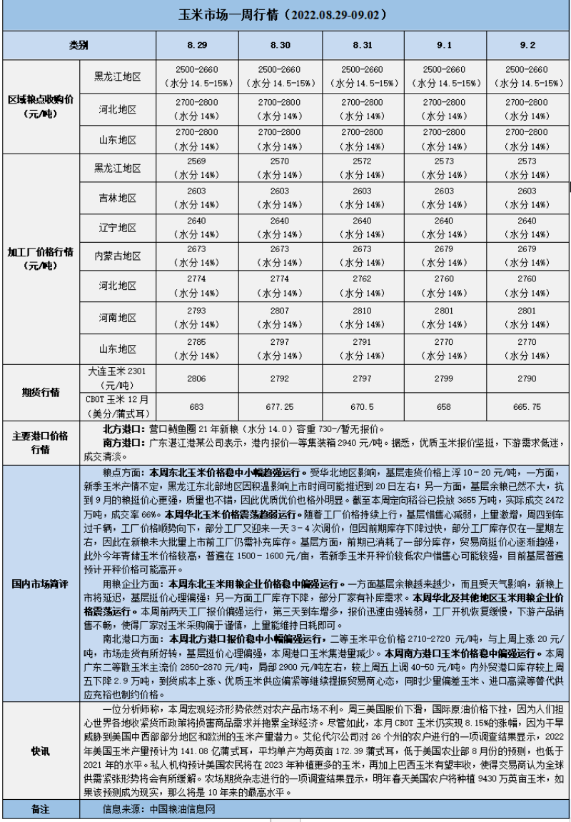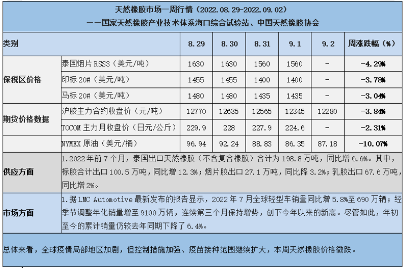 天然橡膠、大豆、玉米市場(chǎng)一周行情(2022.08.29-09.02)