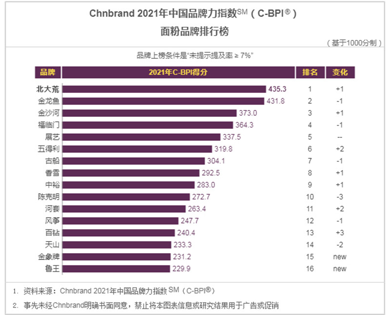 4月20日,中國北京品牌評(píng)級(jí)權(quán)威機(jī)構(gòu)Chnbrand發(fā)布2021年(第十一屆)中國品牌力指數(shù)SM(C-BPI®)品牌排名和分析報(bào)告。糧油行業(yè)中,食用油、面粉、大米三大細(xì)分品類的品牌力指數(shù)排行榜出爐?!氨贝蠡摹逼放票憩F(xiàn)突出,榜上有名,且奪得面粉類品牌力指數(shù)冠軍。
