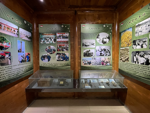 展覽館記載著自1953年農(nóng)場建場以來的發(fā)展歷程,展現(xiàn)了職工住房從地窩變洋樓、農(nóng)業(yè)生產(chǎn)從人拉肩扛到“三大一化”的喜人變化。一層為歷史展覽,主要展品是農(nóng)場發(fā)展歷程中留下的勞動工具及珍貴照片:
