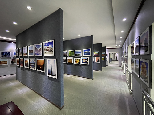 二層為文化展覽,主要展品是職工優(yōu)秀的書畫、攝影作品。