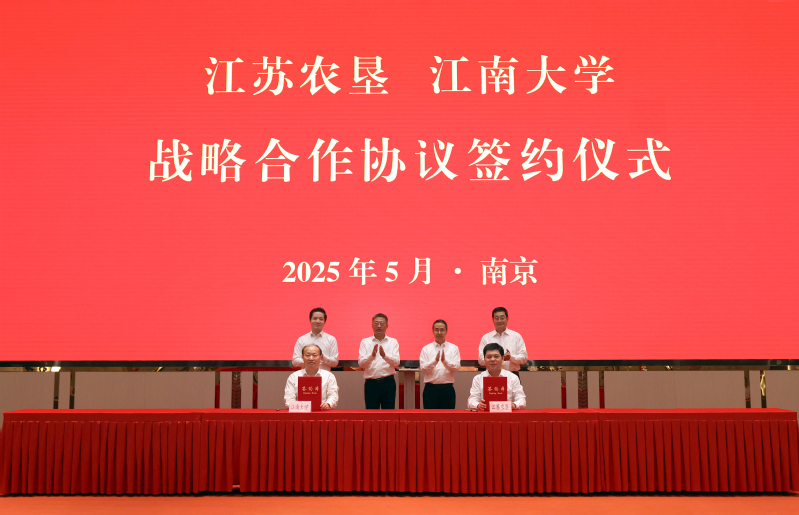 5月7日下午,江蘇省農(nóng)墾集團與江南大學(xué)戰(zhàn)略合作協(xié)議簽約儀式在南京舉行。集團黨委書記、董事長吳本輝致辭,中國工程院院士、江南大學(xué)校長陳衛(wèi)出席并講話。集團黨委副書記朱浩出席簽約儀式,黨委委員、副總經(jīng)理王立新主持簽約儀式。江南大學(xué)黨委常委、副校長顧正彪,江南大學(xué)黨委常委、副校長、卓越工程師學(xué)院院長馬鑫出席簽約儀式。