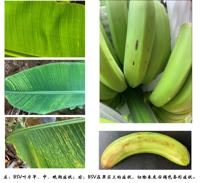 香蕉條斑病毒?。˙anana streak virus, BSV)又名香蕉線條病毒病,嚴(yán)重危及哥倫比亞、烏干達(dá)、哥斯達(dá)黎加、澳大利亞、南非、印度、巴西、菲律賓等國家香蕉產(chǎn)業(yè),可致每公頃損失4.5—30 噸產(chǎn)量。過去,香蕉條斑病在我國也有發(fā)生,但是對生產(chǎn)尚未造成嚴(yán)重危害。