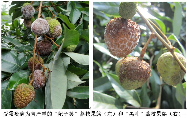 荔枝霜疫?。óa(chǎn)區(qū)也稱霜疫霉病或霜霉?。┦俏覈D贤馄渌鳟a(chǎn)區(qū)的最主要病害,在荔枝果實轉(zhuǎn)色至成熟采摘階段,如遇雨天最易發(fā)生流行,可造成大量的荔枝果實腐爛、脫落(見下圖)。近期,廣西、珠三角及以北地區(qū)出現(xiàn)新一輪強降水,荔枝病蟲害監(jiān)測站調(diào)查發(fā)現(xiàn),荔枝霜疫病在各產(chǎn)區(qū)不同程度發(fā)生,少數(shù)果園病果率在15%以上。據(jù)中國天氣網(wǎng)最新預報:未來10天,我國江南、華南、西南地區(qū)東部及江漢等地降雨量將達到50—100毫米,部分地區(qū)達到120—180毫米,局地超過250毫米,降雨量較常年同期偏多3—6成。這將加重荔枝霜疫病的發(fā)生與流行。對此,專家建議荔枝主產(chǎn)區(qū)監(jiān)測站和生產(chǎn)管理部門應(yīng)密切關(guān)注本地區(qū)天氣變化,加強監(jiān)測與應(yīng)對,指導荔枝種植者做好防控工作。