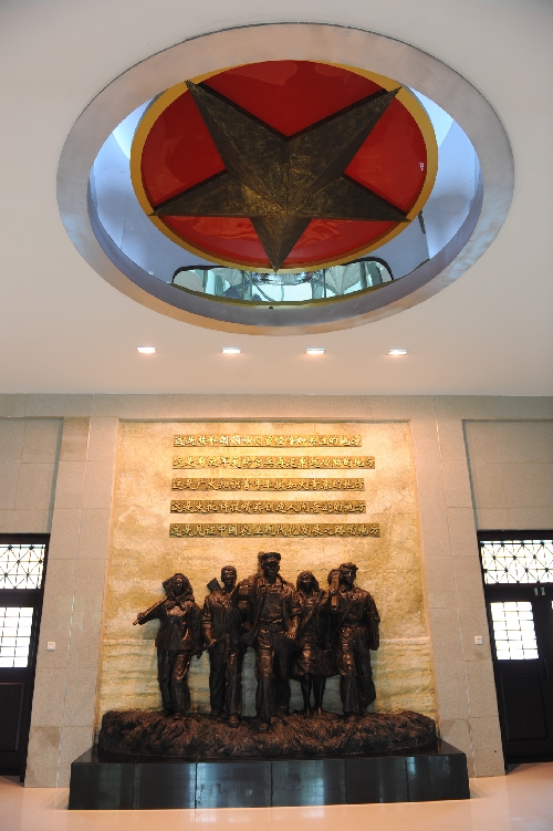 序廳展有主題雕塑,雕塑是開發(fā)建設(shè)北大荒群體中的復(fù)轉(zhuǎn)官兵、知識(shí)青年、支邊青年、科技人員和現(xiàn)代青年五位代表人物的形象,主題雕塑上方是紅興隆博物館的主題詞。
