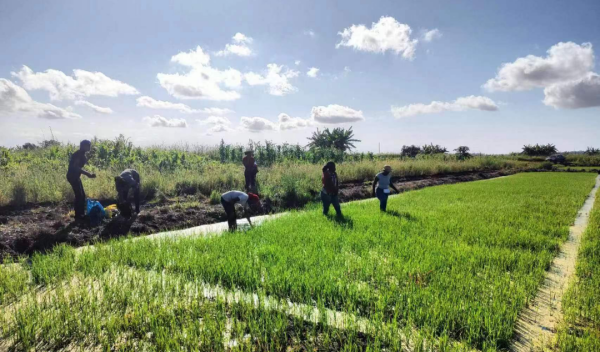 走進位于莫桑比克林波波河畔的湖北-加扎友誼農(nóng)場,映入眼簾的是一大片綠油油的稻田,微風拂過,稻浪翻滾,煥發(fā)勃勃生機。當前正處于早稻田間管理的關(guān)鍵時期,到處是一片熱火朝天、欣欣向榮的繁忙景象,農(nóng)場技術(shù)人員帶領(lǐng)著當?shù)剞r(nóng)戶深入田間地頭,根據(jù)不同地塊水稻生長情況,積極開展田間管理,進行除草、殺蟲、撒肥、疏渠、灌溉等各項農(nóng)事工作,為早稻豐收奠定堅實基礎(chǔ)。