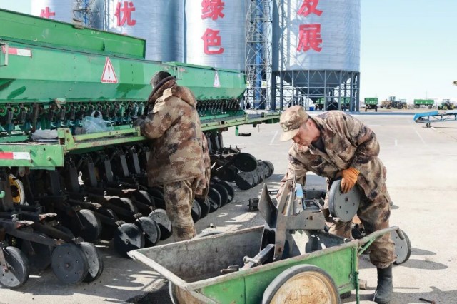 各連隊積極行動,創(chuàng)新舉措頻出。第一連(隊)聚焦技術革新,計劃完成4項設備技改項目,涵蓋了精量播種、覆土效率等多個方面,通過對農機具的改良升級,進一步提升春耕作業(yè)的效率與質量,有效降低作業(yè)損耗,提高作業(yè)標準。第二連(隊)隊長張金浩介紹道:“連隊目前已儲備化肥590噸,剩余70噸即將到位,完成儲備進度的90%。春耕機械設備檢修30余臺,基本完成檢修工作,確保農機以最佳技術狀態(tài)投入春播生產。連隊以自治區(qū)堅強堡壘支部為依托,推動黨建與實際工作深度融合,發(fā)揮黨員先鋒模范帶頭作用,叫響‘不畏嚴寒,奮戰(zhàn)春耕’的口號,全力保障備耕任務高標準完成?!?
