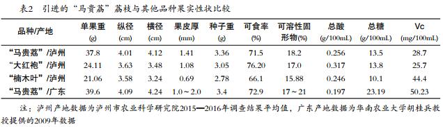 2013—2016年的調(diào)查數(shù)據(jù)顯示,引進(jìn)的“馬貴荔”荔枝與瀘州“大紅袍”荔枝嫁接親和性好,表現(xiàn)適應(yīng)瀘州地區(qū)氣候環(huán)境,高接換種后樹體生長(zhǎng)好,易成花結(jié)果,較豐產(chǎn)。引進(jìn)的“馬貴荔”荔枝主要物候期均晚于瀘州地區(qū)主栽的“大紅袍”荔枝和晚熟的“楠木葉”荔枝,果實(shí)成熟期較“大紅袍”荔枝晚30d左右,較“楠木葉”荔枝晚7d左右。引進(jìn)的“馬貴荔”荔枝銷售時(shí)間錯(cuò)開了瀘州荔枝上市高峰期,延長(zhǎng)了瀘州荔枝上市時(shí)間,對(duì)擴(kuò)大瀘州地區(qū)荔枝晚熟優(yōu)勢(shì)有所幫助。引進(jìn)的“馬貴荔”荔枝銷售價(jià)格連續(xù)3年高于當(dāng)?shù)刂髟缘摹按蠹t袍”荔枝和晚熟的“楠木葉”荔枝,商品價(jià)值較高。與原產(chǎn)地相比,引進(jìn)的“馬貴荔”荔枝在主要果實(shí)性狀和品質(zhì)上基本保持了原有的優(yōu)良特性,并優(yōu)于瀘州地區(qū)主栽的“大紅袍”荔枝和晚熟的“楠木葉”荔枝。但與“帶綠”“紅繡球”等優(yōu)質(zhì)晚熟荔枝相比,“馬貴荔”荔枝在品質(zhì)上還存在某些方面的不足,如核大、成熟后味道容易變淡等。從綜合性狀看,“馬貴荔”荔枝適合在瀘州荔枝優(yōu)勢(shì)發(fā)展區(qū)進(jìn)行適量推廣應(yīng)用,其特遲熟等特性將為瀘州地區(qū)荔枝雜交育種提供一份難得的種質(zhì)資源。